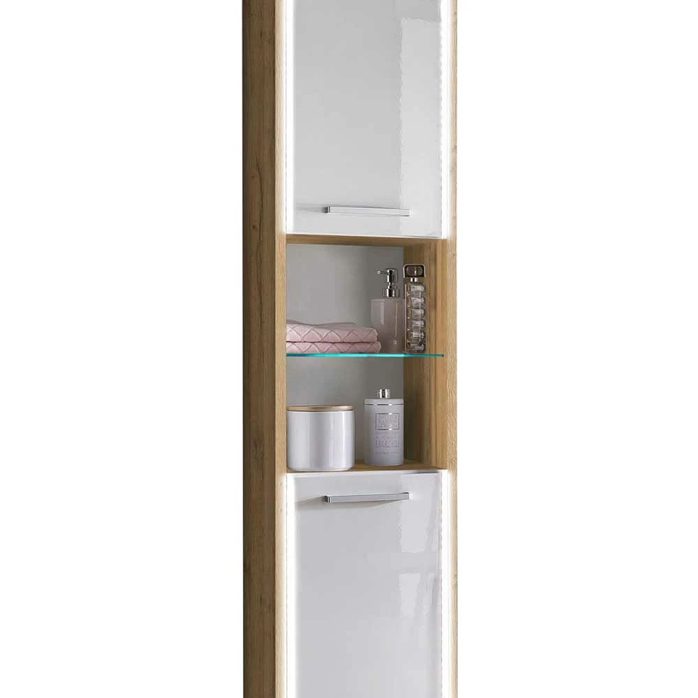 - Eleganter Badezimmer Schrank in Wildeichefarben und Weiß Hochglanz