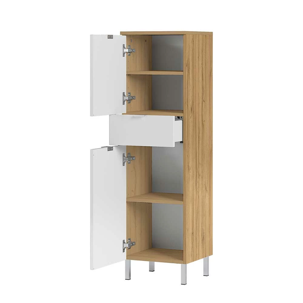- Angesagter Bad Midischrank in Weiß und Wildeichefarben