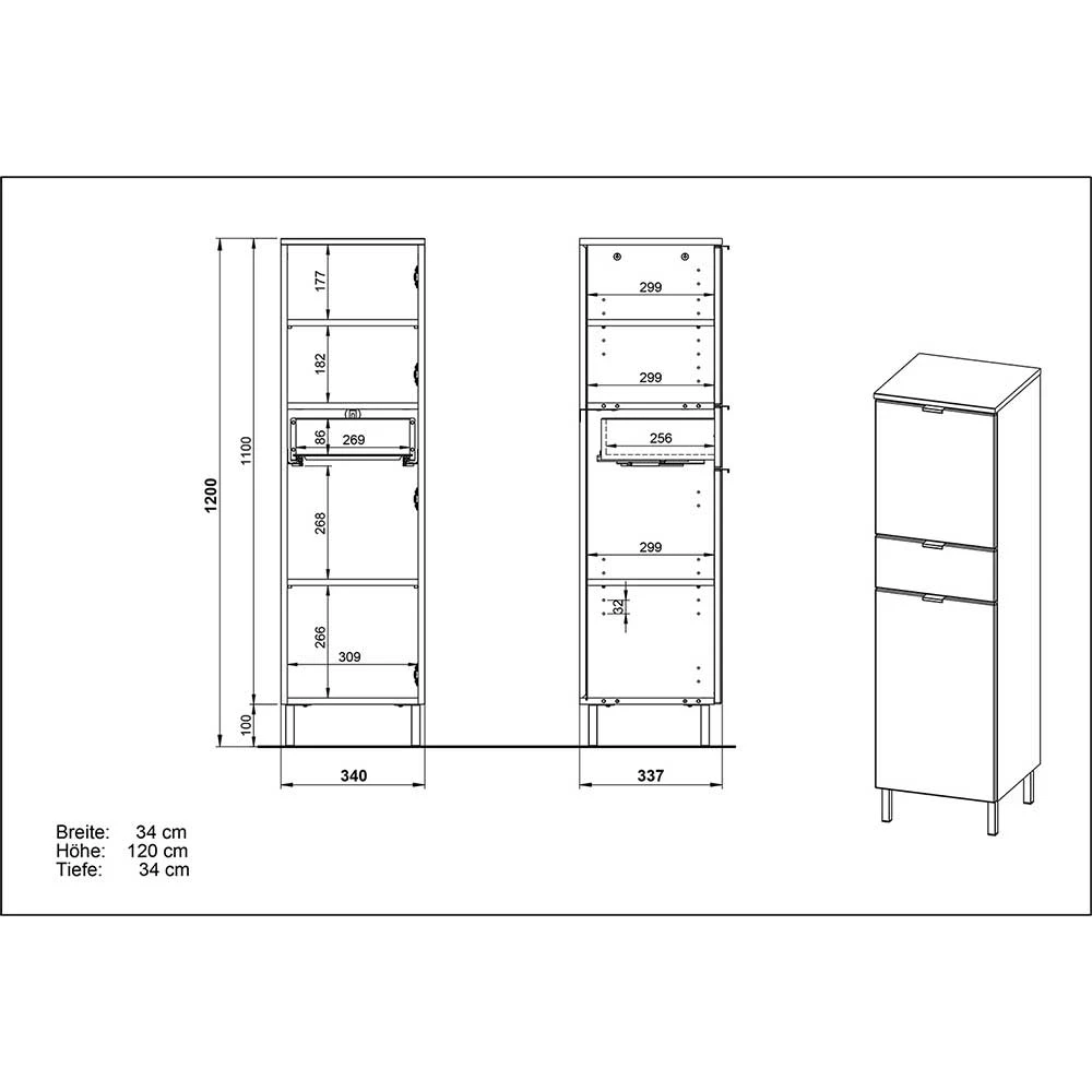34x120x34 Badschrank 2-türig & Schublade – Narilos