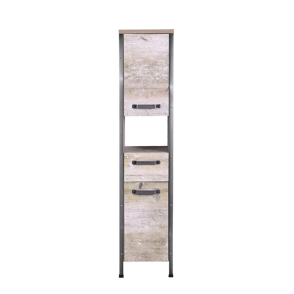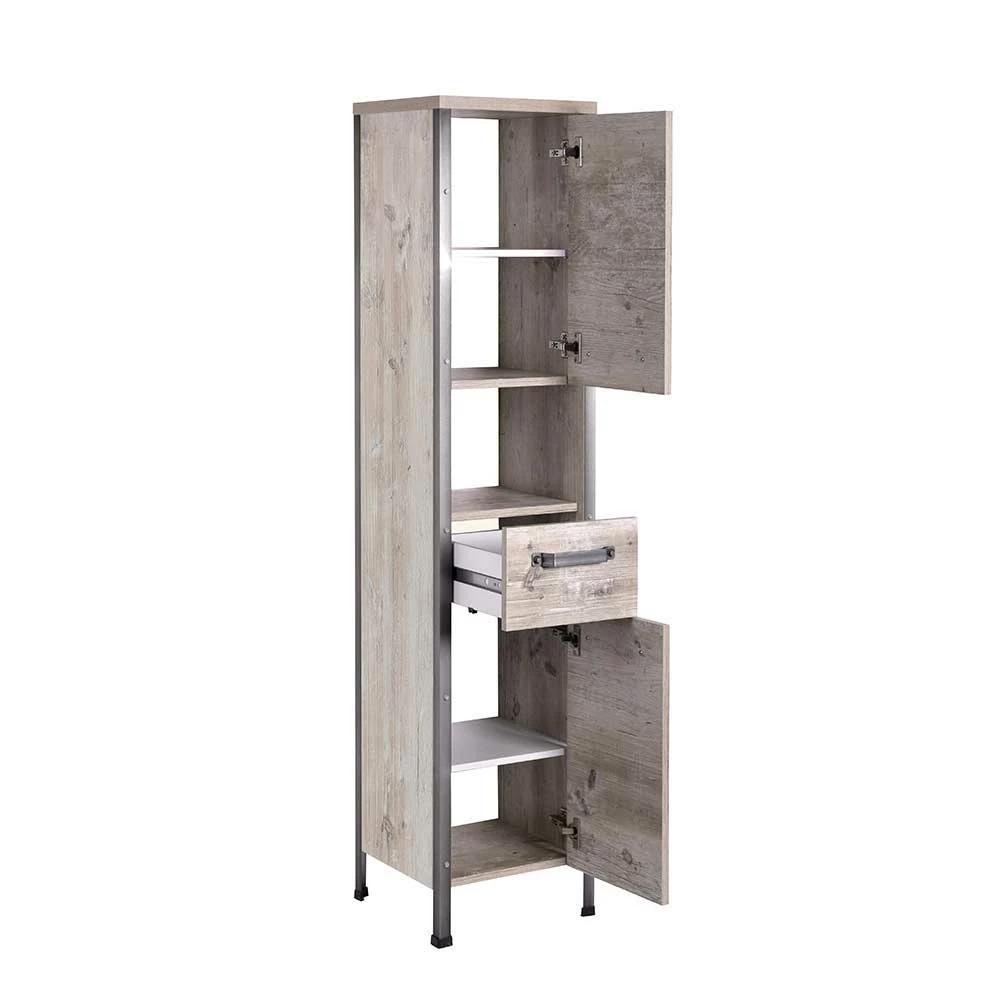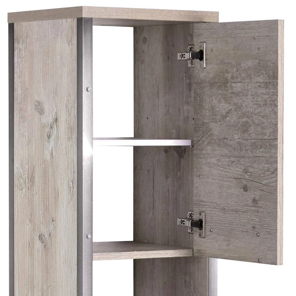 - Stylischer Bad Hochschrank in Eiche Grau
