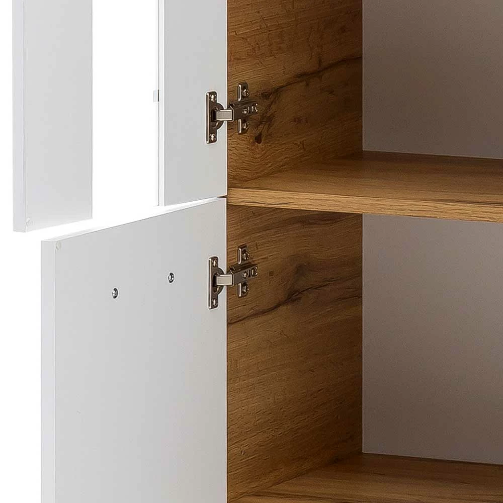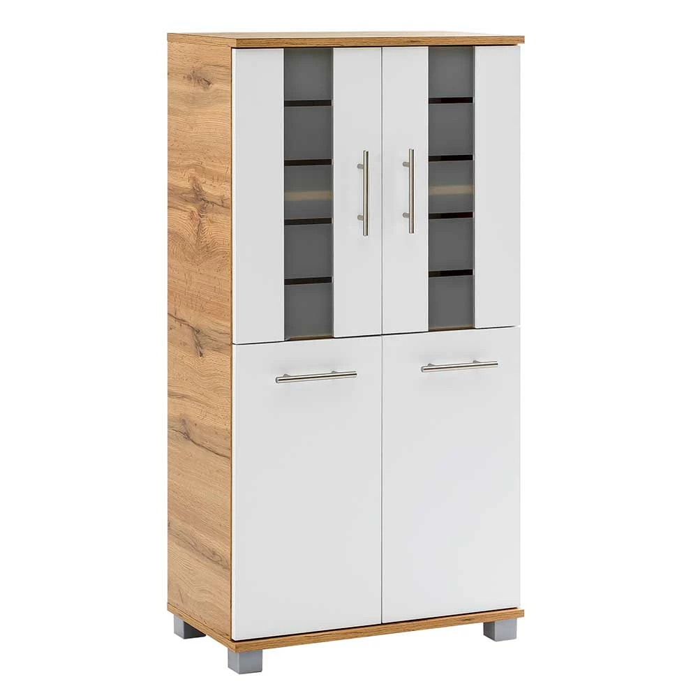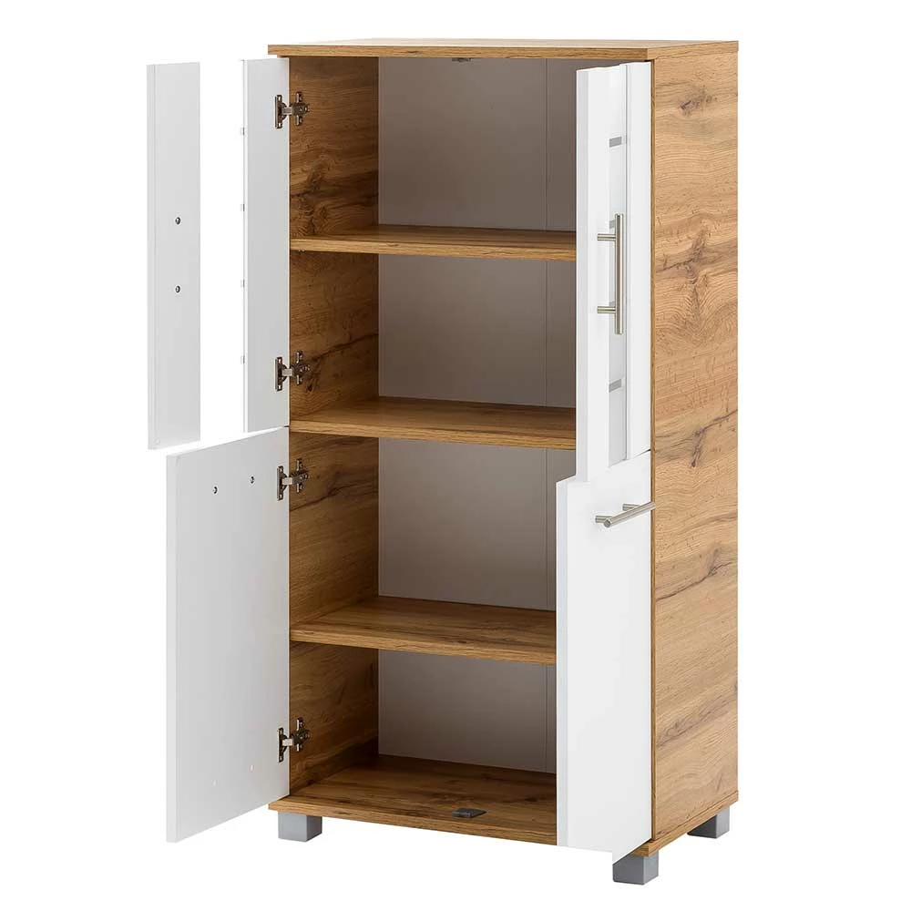 - Großzügiges Bad Highboard in Weiß und Eichefarben