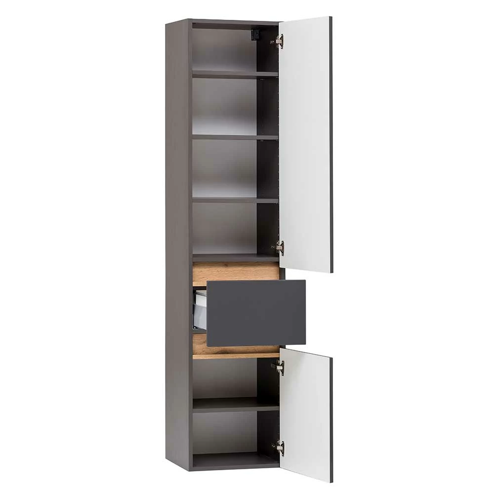 40x185x35 Bad Hochschrank In Grau Mit Wildeiche – Agiruan