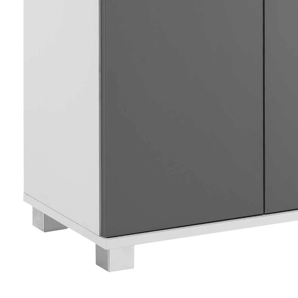 - Melaminbeschichtete Oberflächen, Korpus in Weiß und Front in Grau