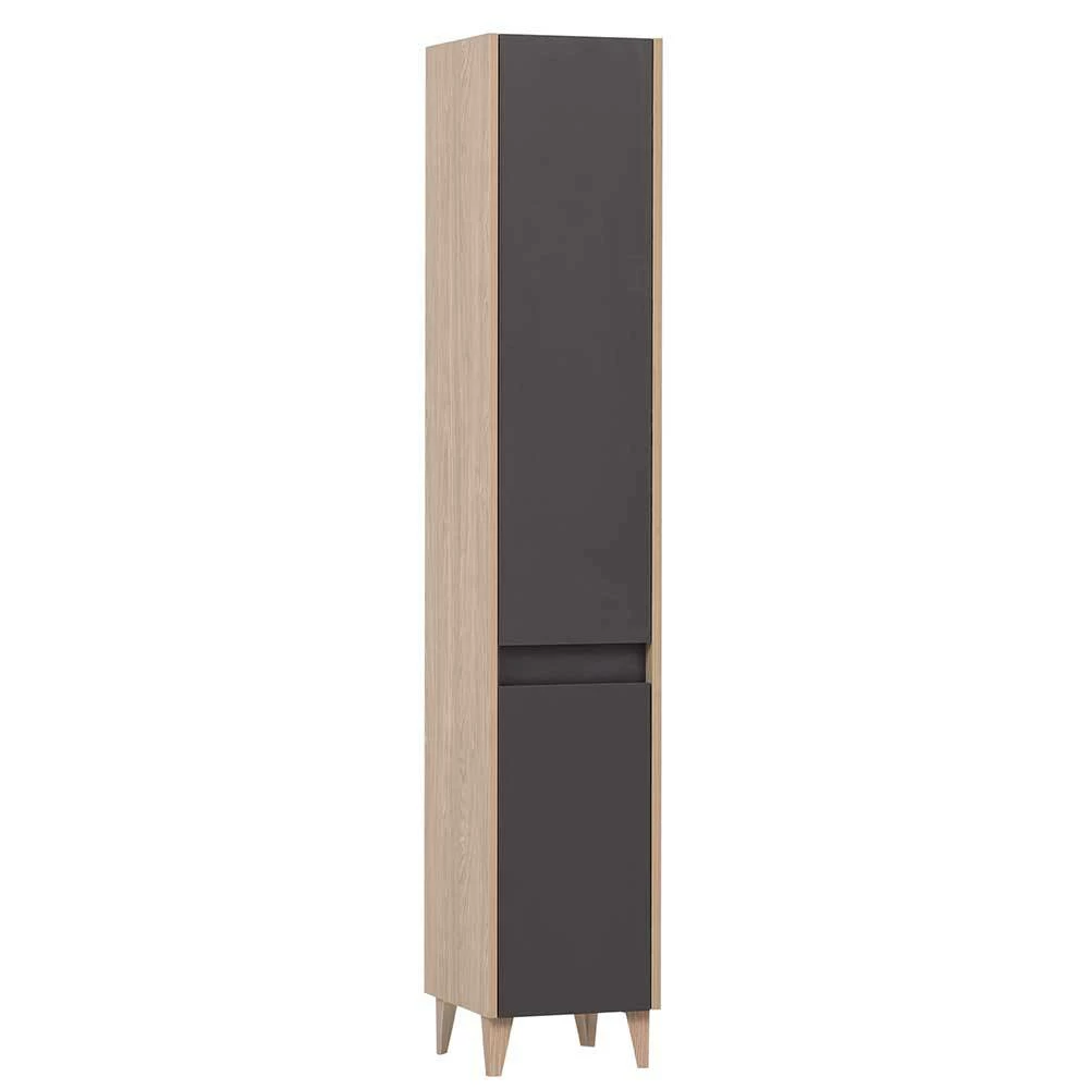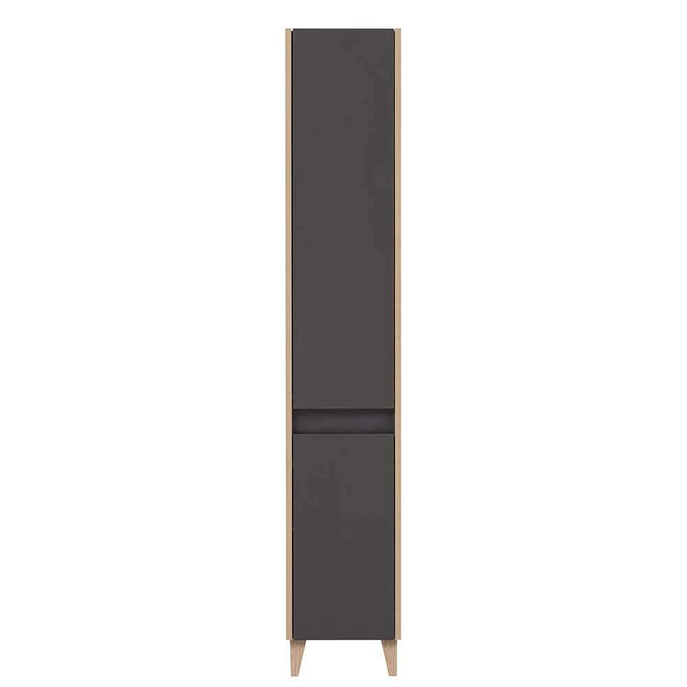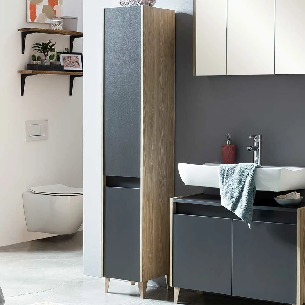 - Attraktiver Bad Hochschrank in Anthrazit und Eiche hell
