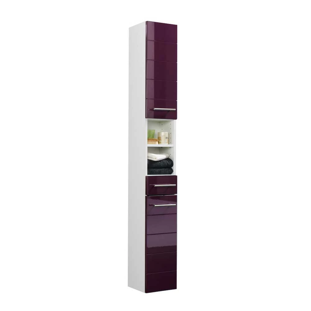 Badezimmer Hochschrank Laydia In Aubergine Hochglanz