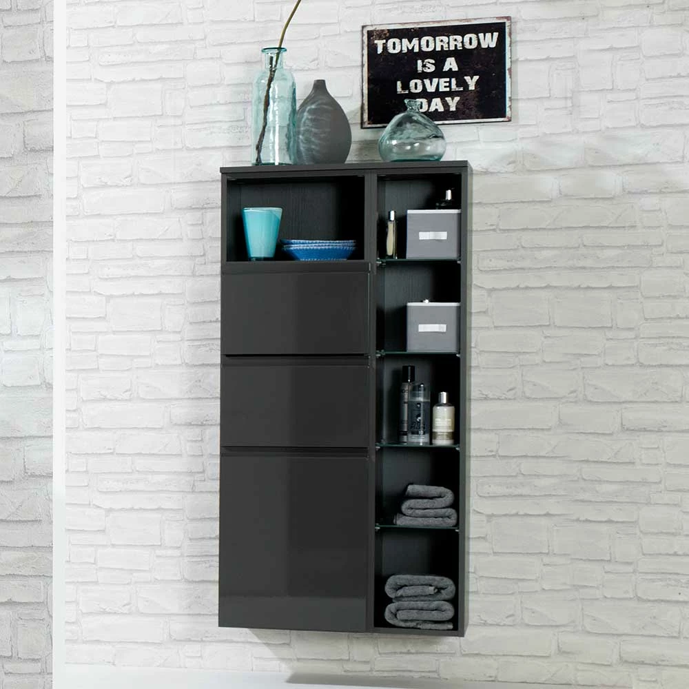 Badezimmer Seitenschrank Blaxin In Anthrazit Hochglanz