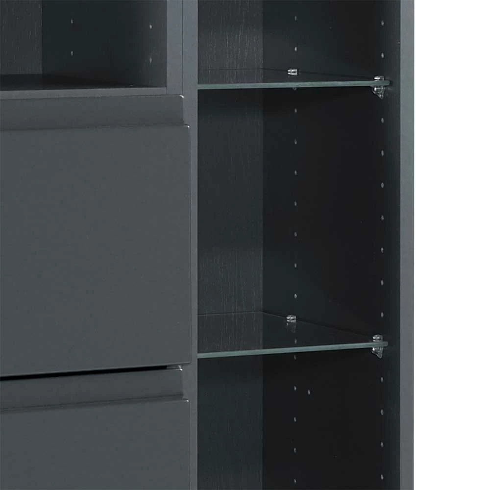 - Offenes Fach mit vier verstellbaren Glas Einlegeböden, über den Schubkästen ein offenes Fach