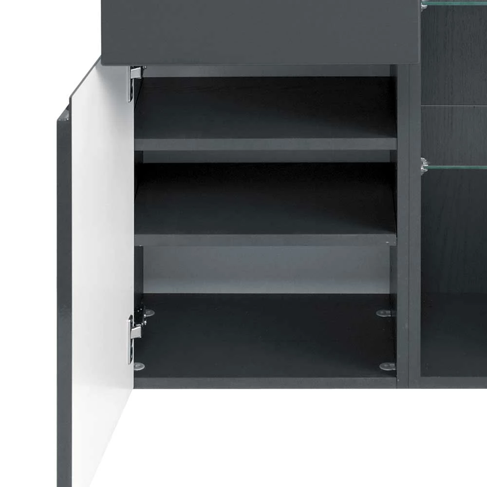 - Oberfläche der Front mit Hochglanz, Korpus mattgrau melaminbeschichtet