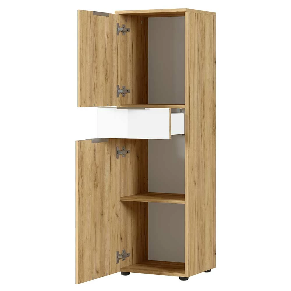 - Geräumiger Bad Midischrank in Weiß und Wildeichefarben