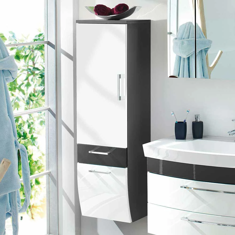- Wundervoller Bad Hochschrank in Anthrazit und Weiß