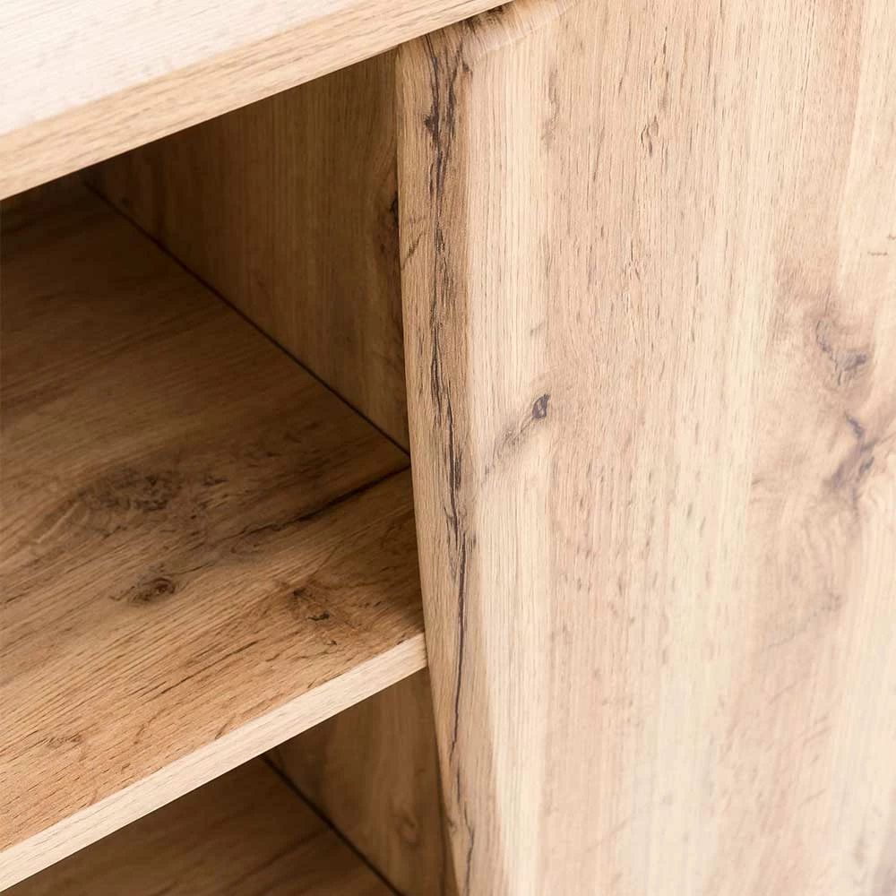 - Oberflächen in Holzoptik Wildeiche mit Touchwood, Front foliert, Dekor tiefgezogen, Korpus melaminbeschichtet, Innendekor weiß