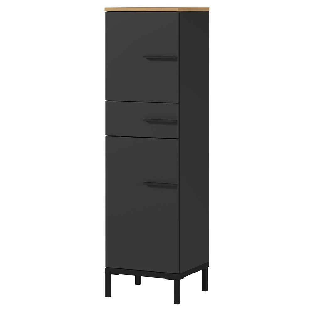 - Praktischer Bad Midischrank in Dunkelgrau und Eichefarben