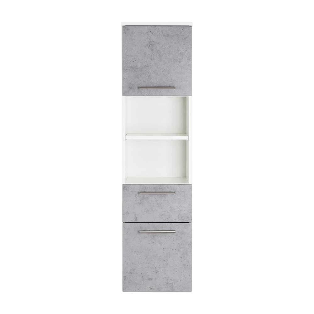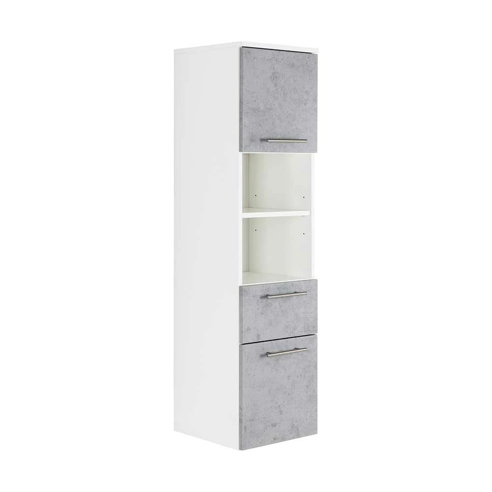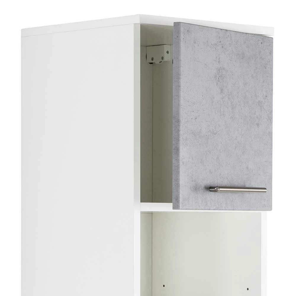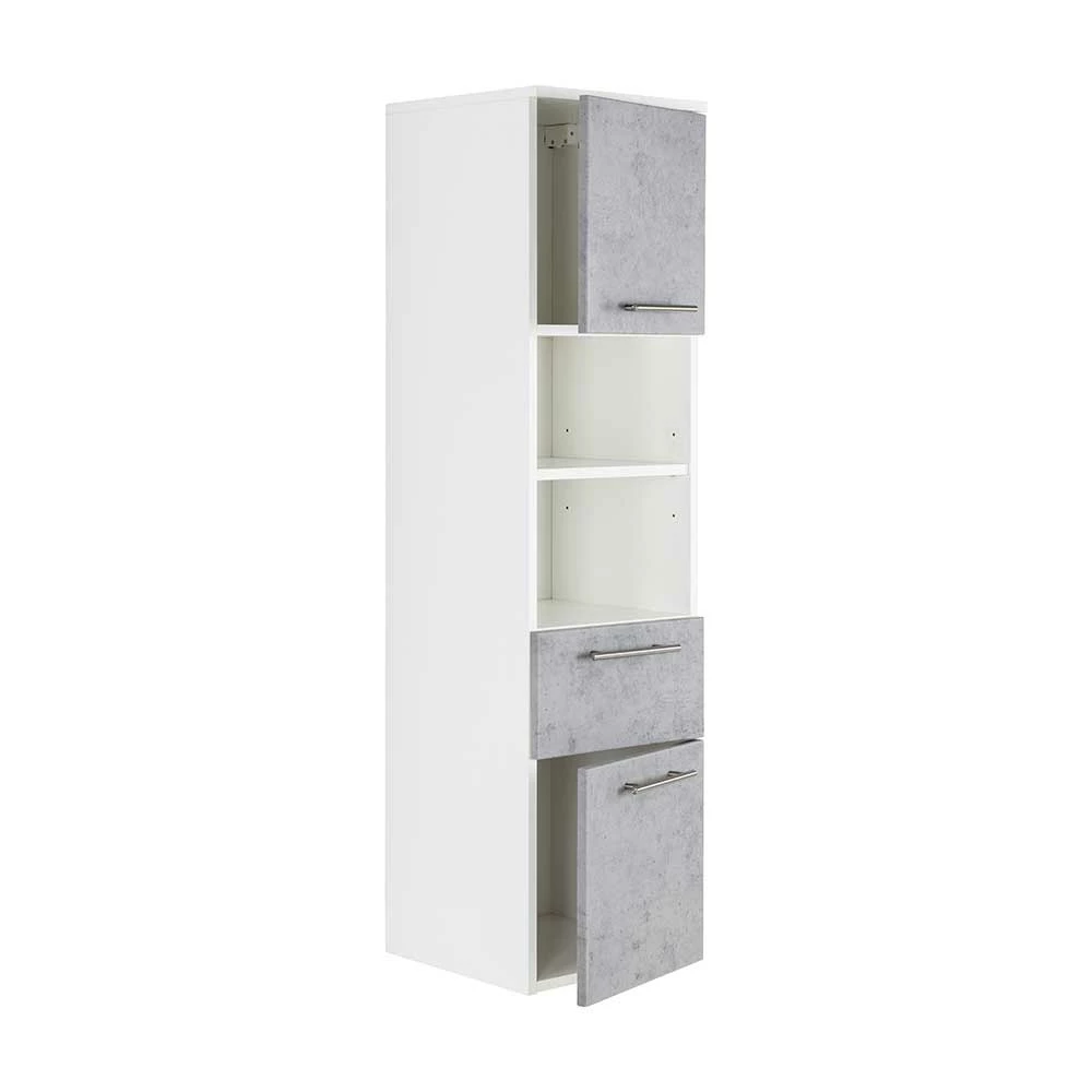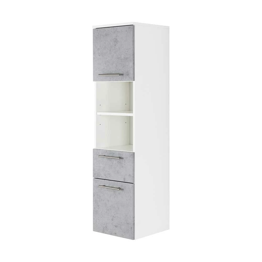 - Attraktiver Bad Hochschrank in Weiß und Beton Grau