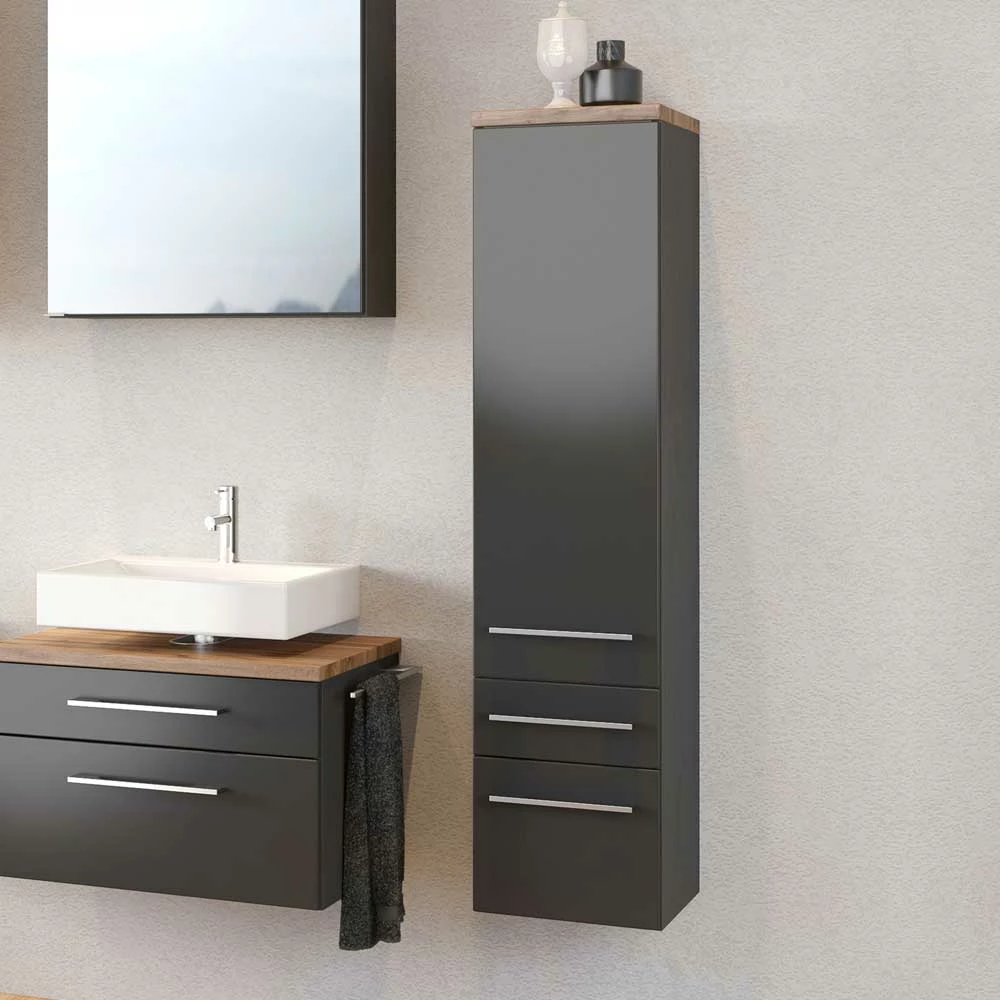 - Aktueller Bad Midischrank in dunkel Grau und Wildeichefarben